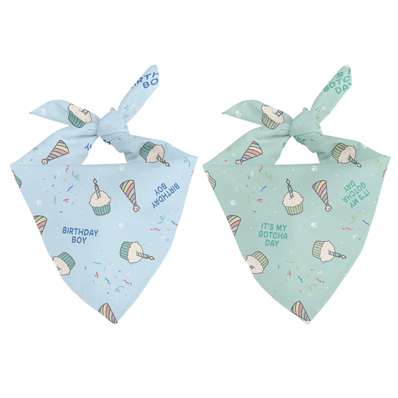 Celebrate your pups birthday and gotcha day with one bandana! The adorable blue side is perfect for the birthday pup and the green side will help celebrate their gotcha day in style. This bandana is made of our signature cotton fabric and is available in sizes small, medium, and large.