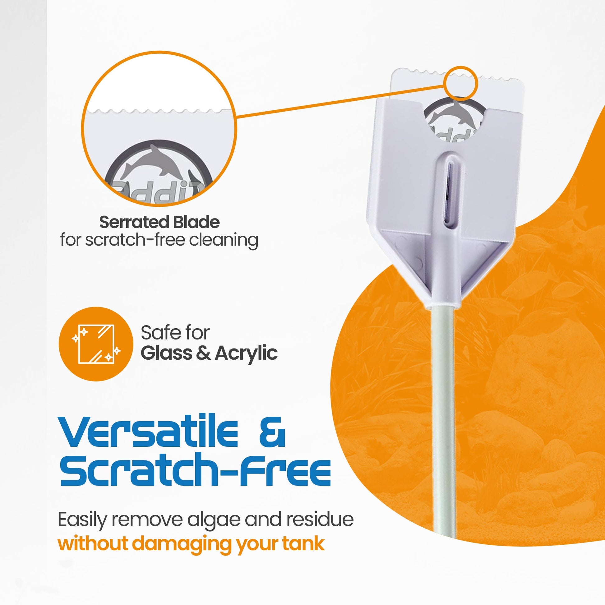 - Optional stainless steel blade (sold separately) is great for tackling really hard algae deposits all over your tank (for glass tanks only).