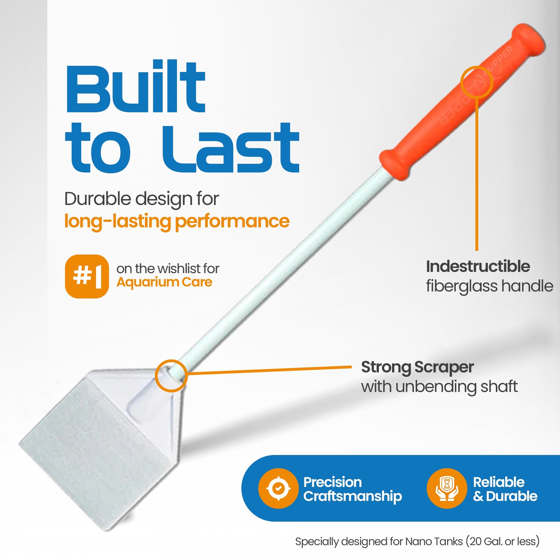When it comes to aquarium scrapers.......One size does NOT fit all! Flipper Platinum NANO Aquarium Scraper for NANO-SIZED Glass and Acrylic Tanks.