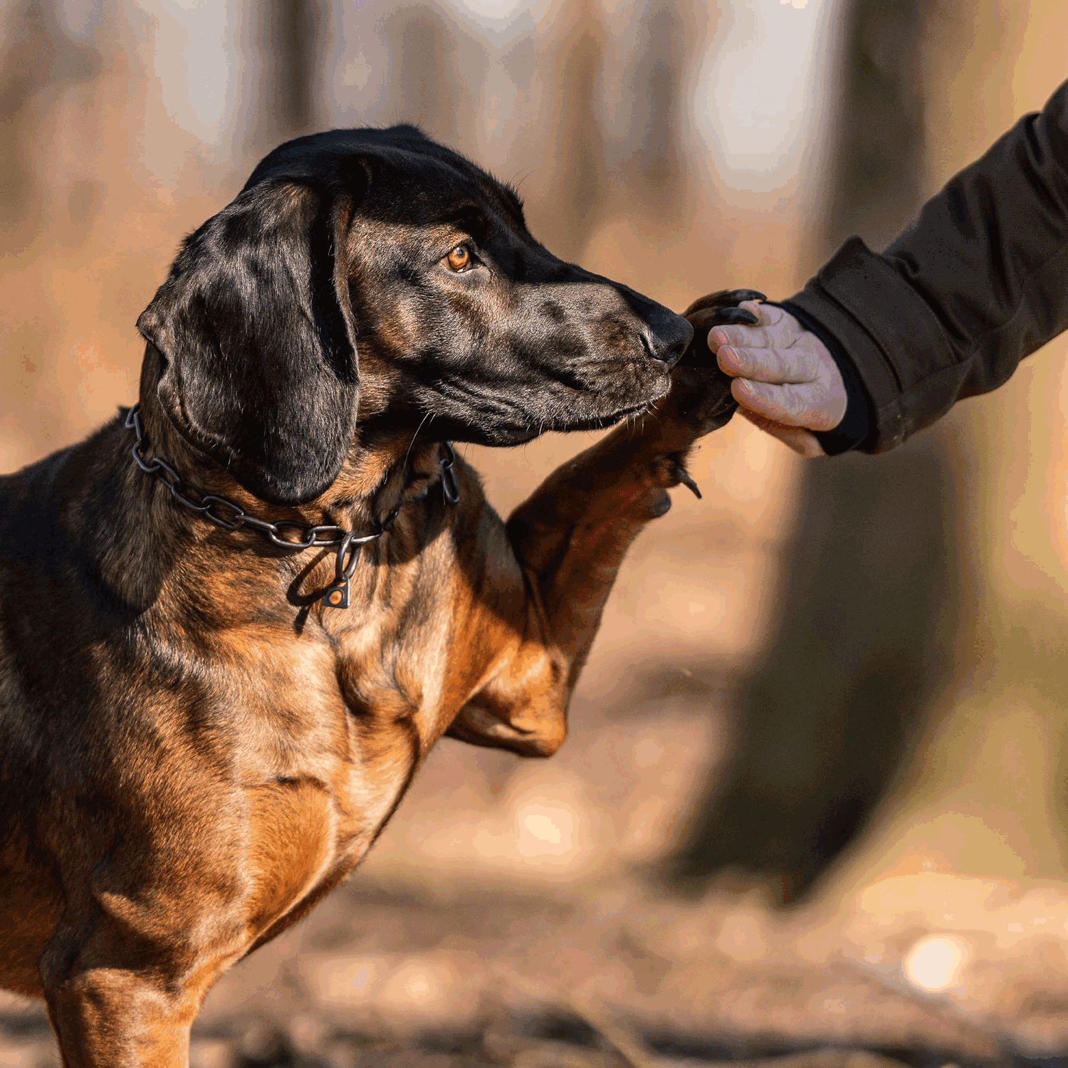 This chain-style dog collar is made from high-quality Stainless Steel with a black finish. It works for all coat types, as well as both large and small dog breeds due to the high breaking load. The addition of the SPRENGER hook allows for ease of use, as well as flexible size adjustment.