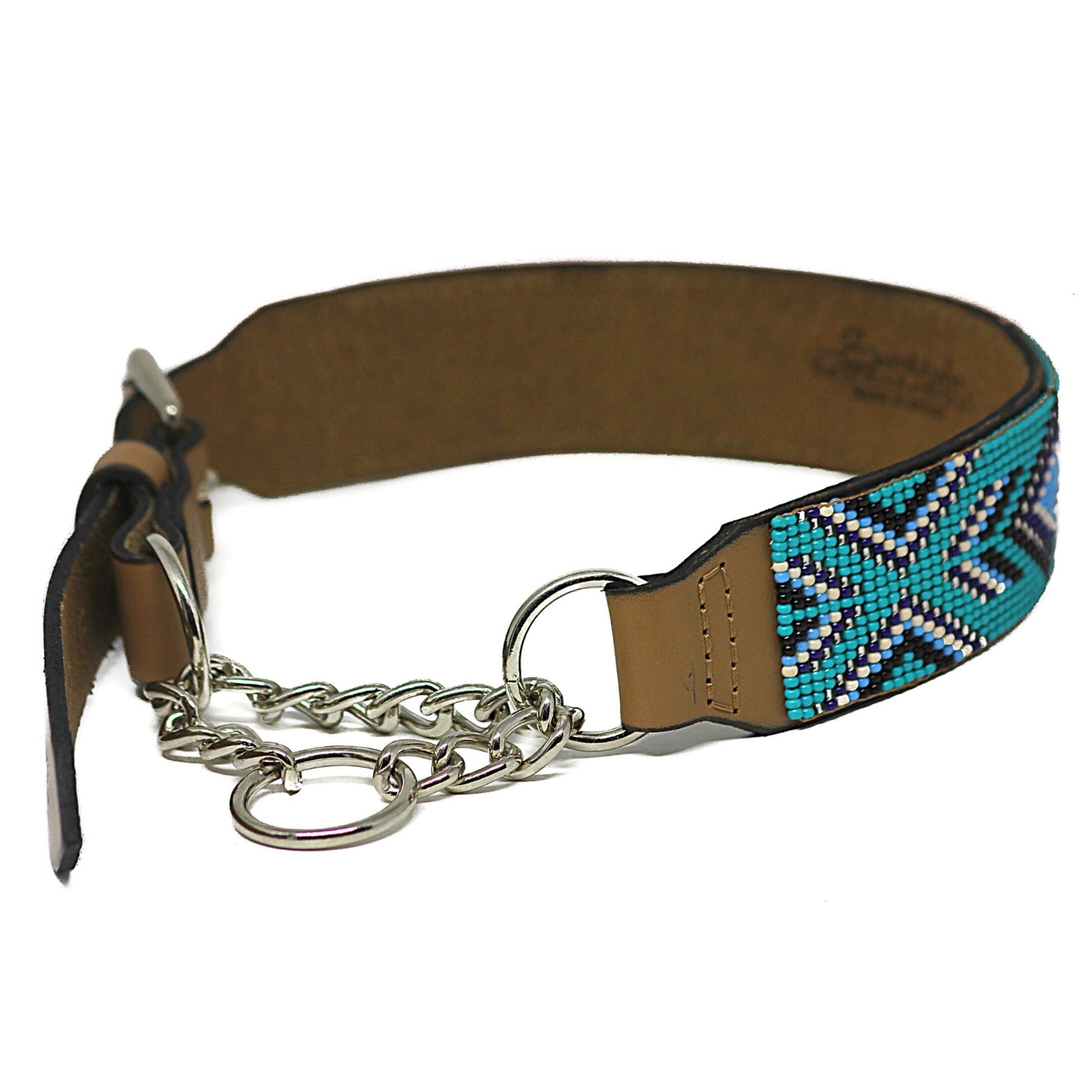 The Sambboho leather beaded martingale training dog collar is finally here. It’s a handmade artisan piece specifically designed for strong dogs or dogs who are known to skillfully wriggle out of any collar or harness. Even if your dog is trained to walk on a lead, this collar can prevent you to lose control in unexpected moments (ex: A dog that panics at the sight of other dogs). The full grain leather will prevent allergic reactions, perfect for sensitive skin. The heavy-duty hardware is extremely resistant. The welded links and rings are made of stainless steel, they will not fade or rust. The collar is water resistant (leather protected by an organic beeswax coating). The beads will not fall off with one easy scratch! We use a traditional beading technique to make sure the beading is long lasting and we do not use glue! We only use natural and sustainable material, no nylon or plastic of such, as they leak toxic chemicals in your dog’s blood stream over time. We have combined the artisanal beauty of Sambboho dog collars to the practically of a training collar. Each collar is individually crafted by female artists in our workshop in Brazil. You are buying a high fashion designer piece. Sambboho products have been featured in Vogue magazine as a non-paid ad! Our beads are glass beads that do not fade and are imported from Slovakia. Our women’s artisans have fair wages to allow them to provide for the household (see mission of Sambboho). All Sambboho collars come with a 1-year warranty! We accept returns and exchanges within 30 days if returned like new.